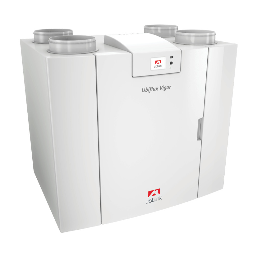 Az Ubbink Ubiflux Vigor W600 4/0 R (jobbos) egy központi hővisszanyerős szellőztető gép, amely akár 600 m³/h légszállítási kapacitást is elér 188 Pa nyomáson. A készülék rendkívül kompakt, energiahatékony, és számos modern funkcióval rendelkezik, amelyek ideálisak családi házak és lakások szellőztetésére.