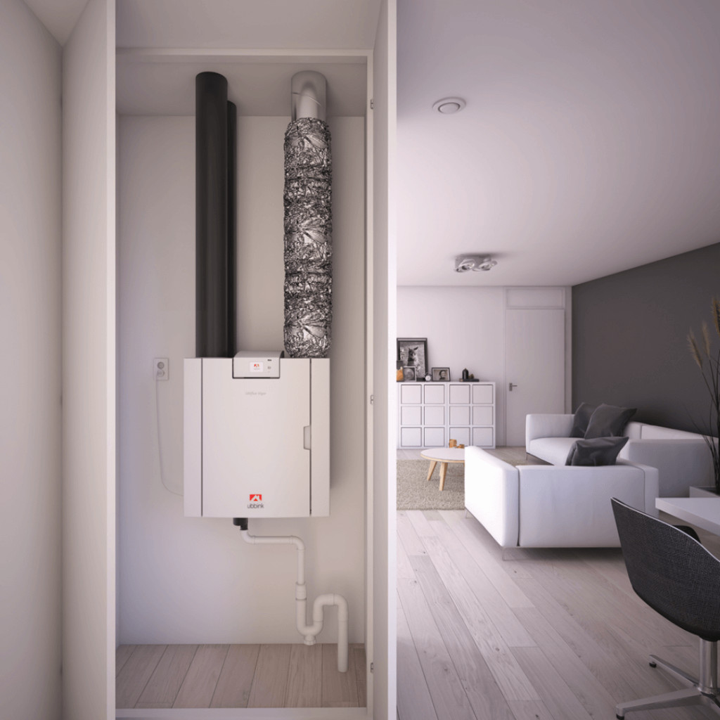 Ubbink Vigor W600 4/0 R passzívház-minősített fali hővisszanyerős szellőztetőgép, amely családi házak és lakások kiegyensúlyozott, energiatakarékos szellőztetésére készült.